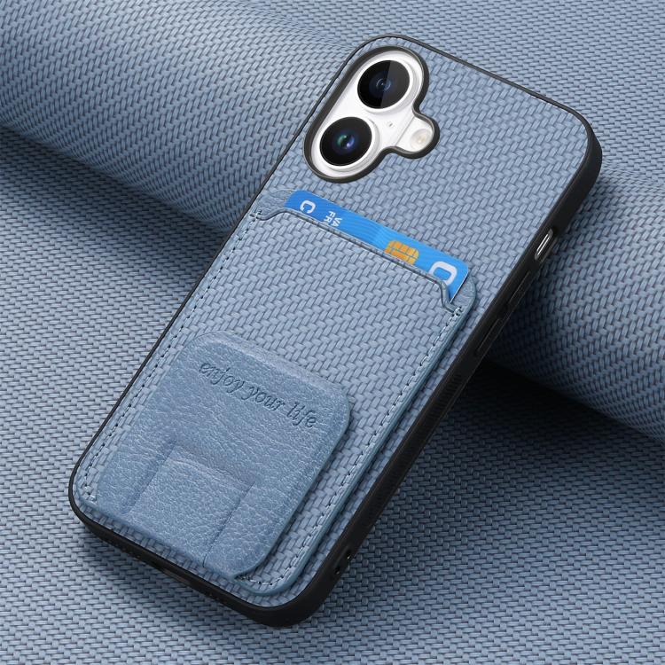 Funda plegable con soporte para tarjetas de fibra de carbono para iPhone 17 (azul)