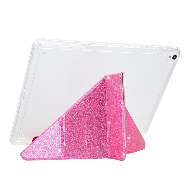 Funda plegable en Y de acrílico transparente con purpurina para iPad 10.2 (2021) y Air 10.5 (rosa)