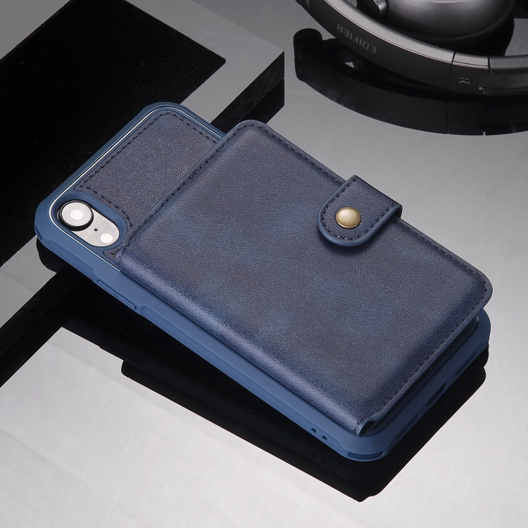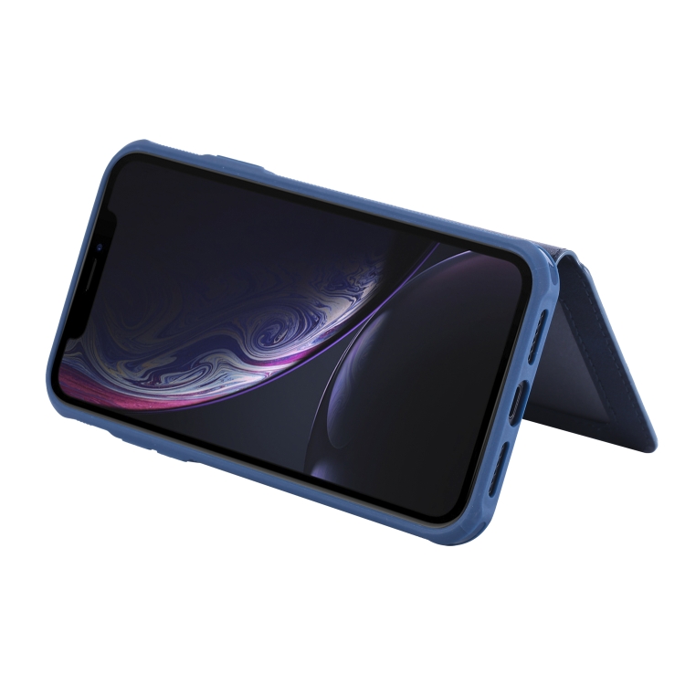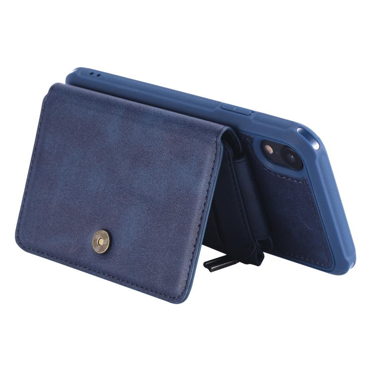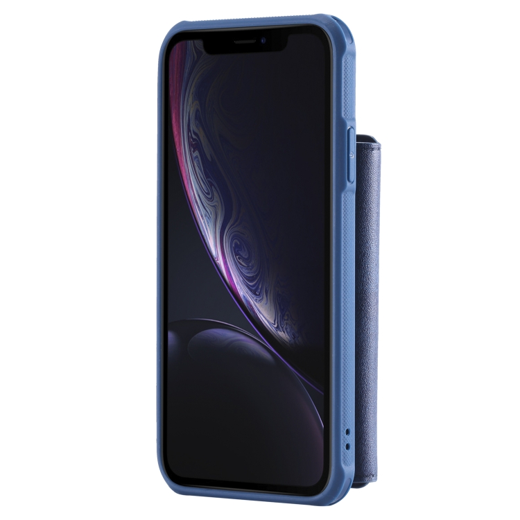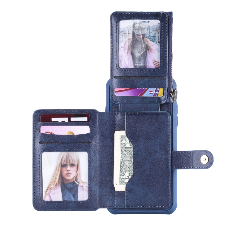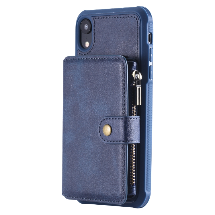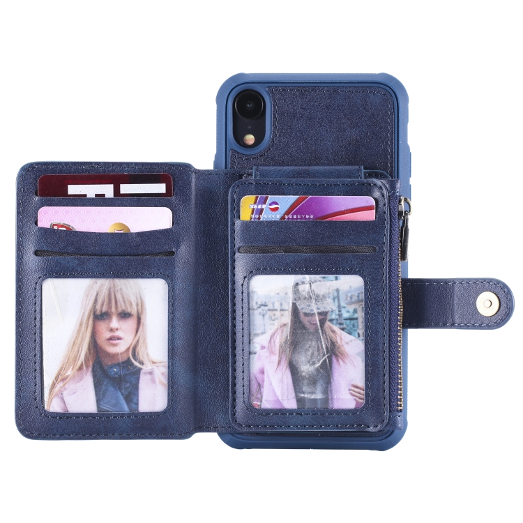 Funda Protectora para iPhone Xr con Cremallera Ranuras Tarjetas Soporte Fotos Billetera (Azul)