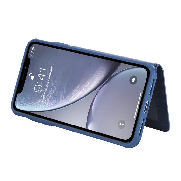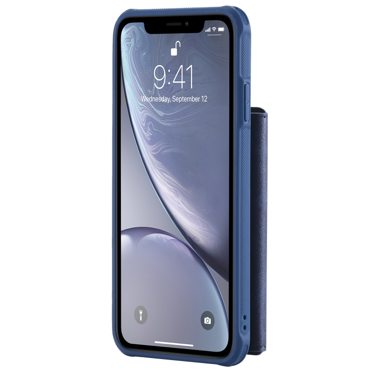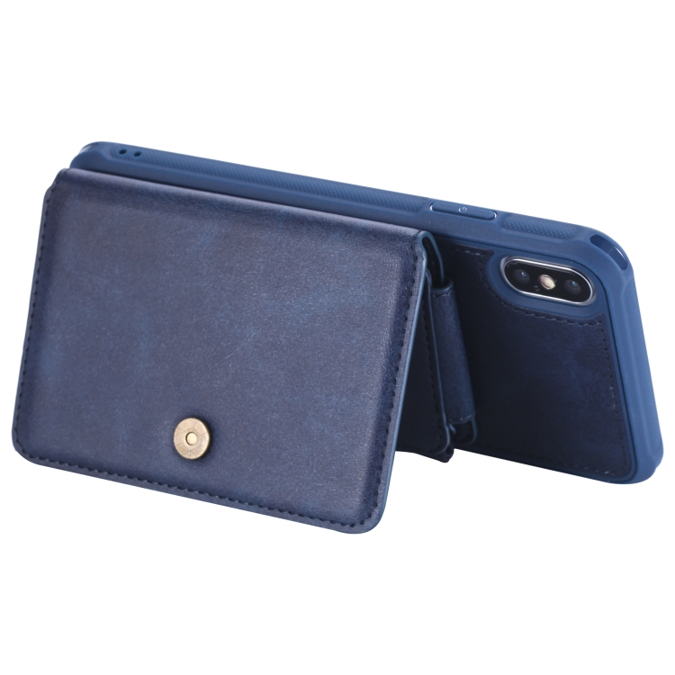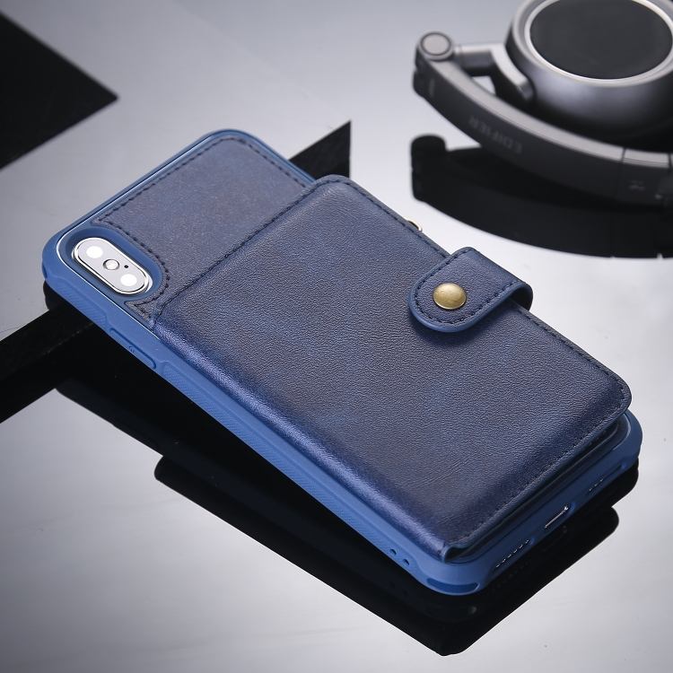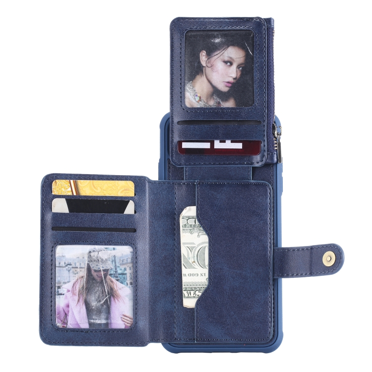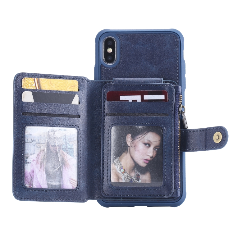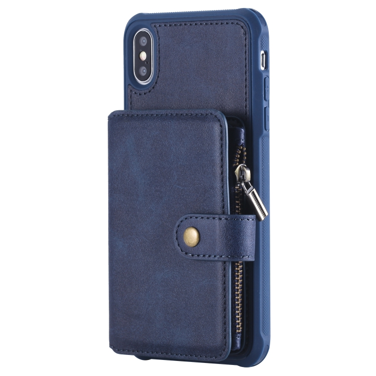 Funda Protectora iPhone Xs Max con Cremallera Ranuras Tarjetas Soporte Fotos Billetera (Azul)
