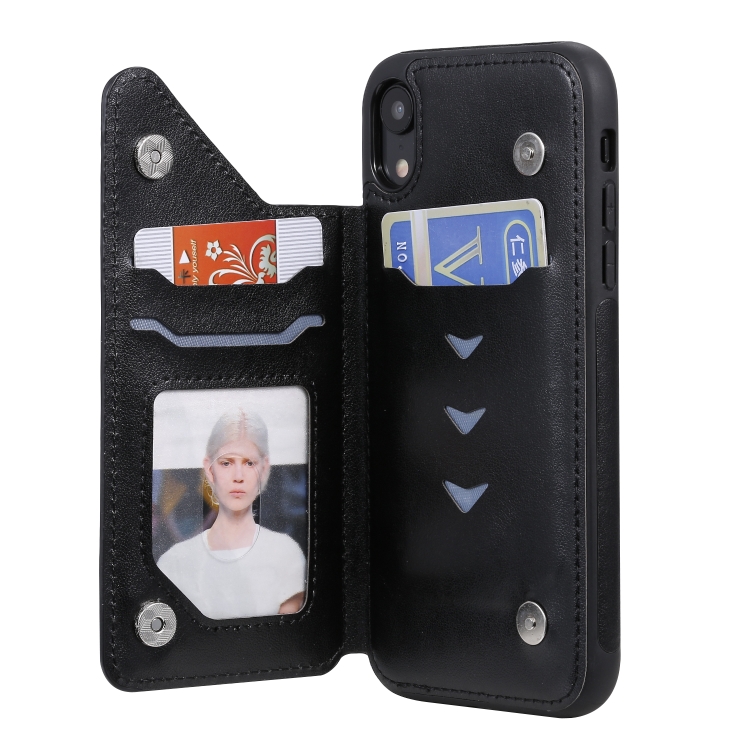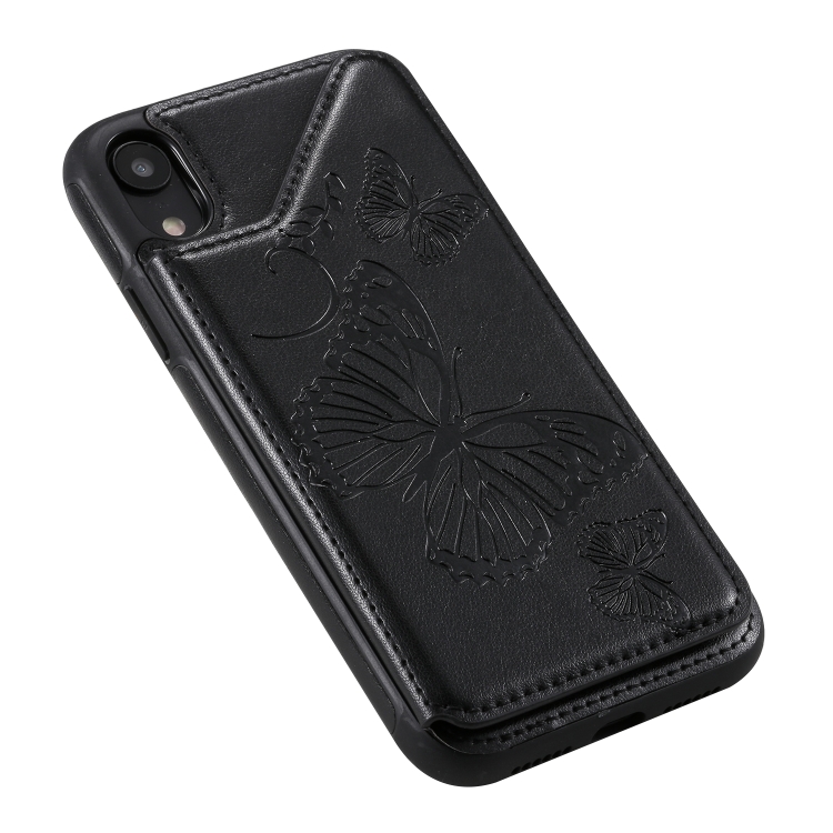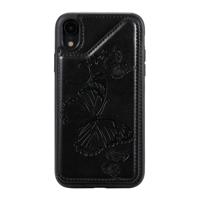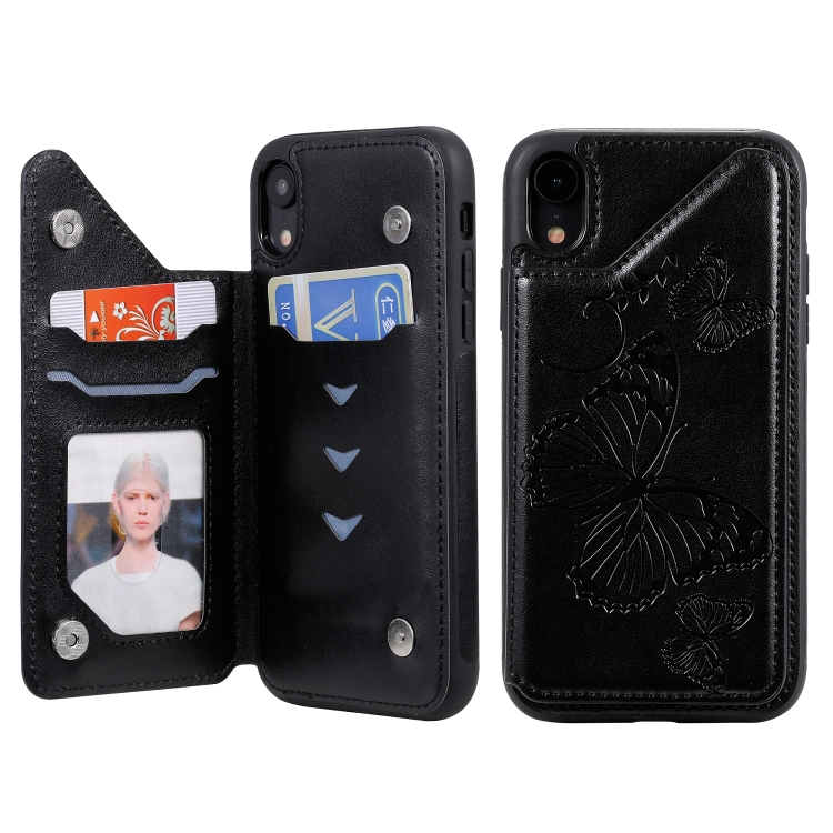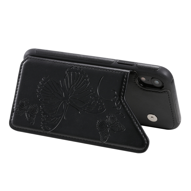 Funda Protectora iPhone Xr Estampado Mariposa Soporte Ranuras Tarjetas Marco Fotos (Negro)