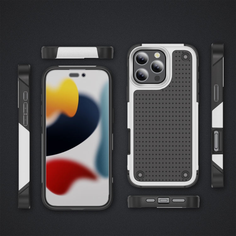 Funda Protectora para iPhone 16 Pro de PC y TPU a Prueba de Golpes (Blanco y Negro)