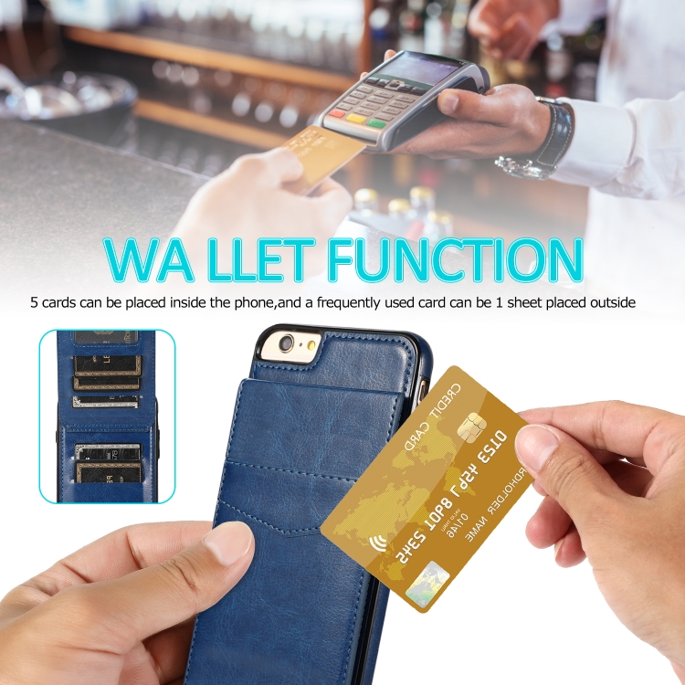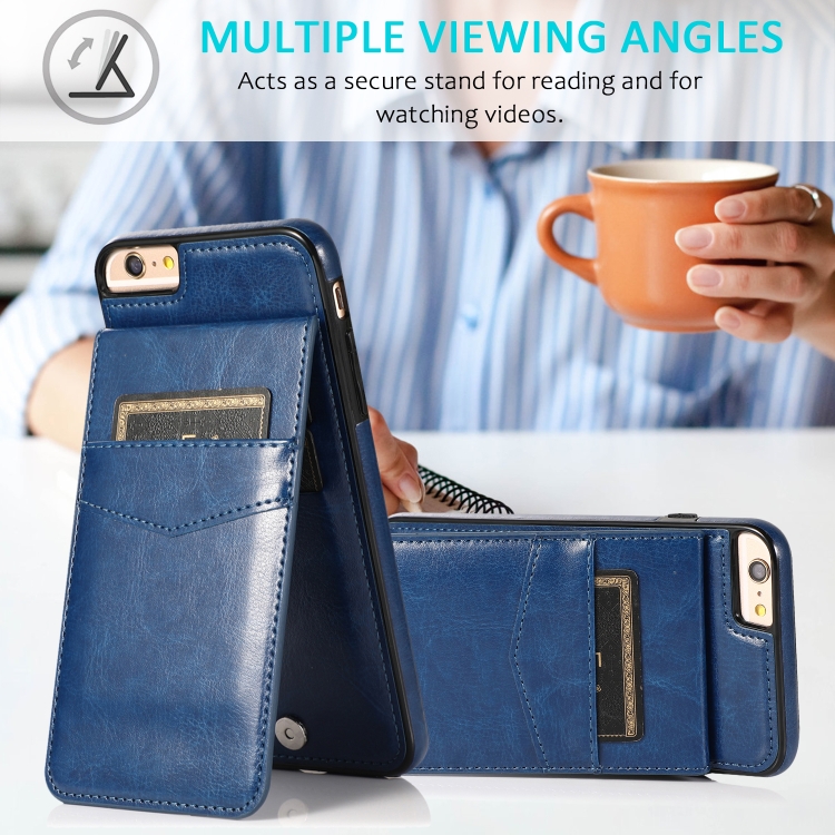 Funda Protectora PC + TPU iPhone 6 Plus Soporte Ranuras Tarjeta (Azul)