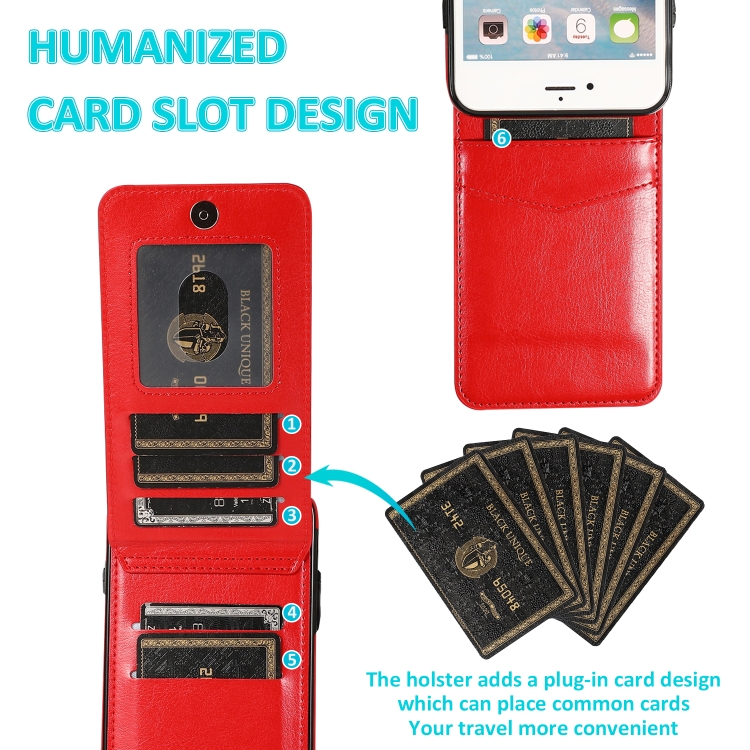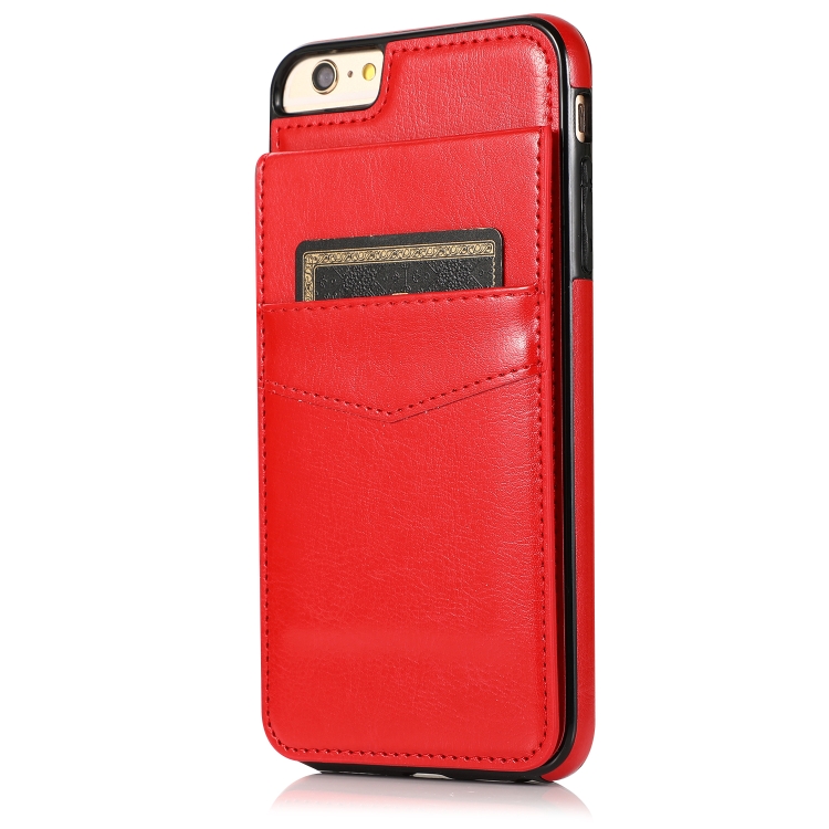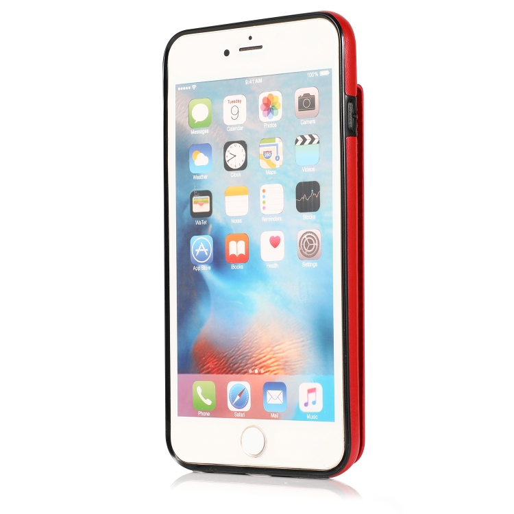 Funda protectora PC + TPU iPhone 6 Plus soporte ranuras tarjeta (Rojo)