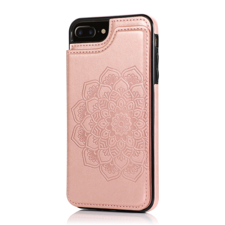 Funda Protectora PU + TPU Mandala Doble Hebilla Ranuras Tarjetas Soporte Marco Fotos iPhone 7 Plus 8 Plus (Oro Rosa)