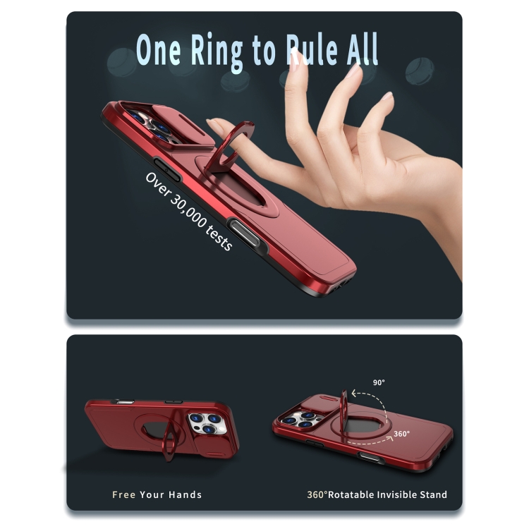 Funda Protectora para iPhone 16 Pro Max con Soporte de Anillo Magsafe Camshield (Roja)