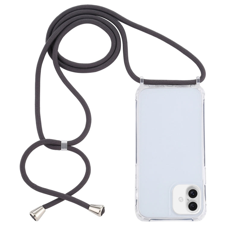 Funda Protectora iPhone 16 Acrílico Transparente a Prueba de Golpes con Cordón (Gris Oscuro)