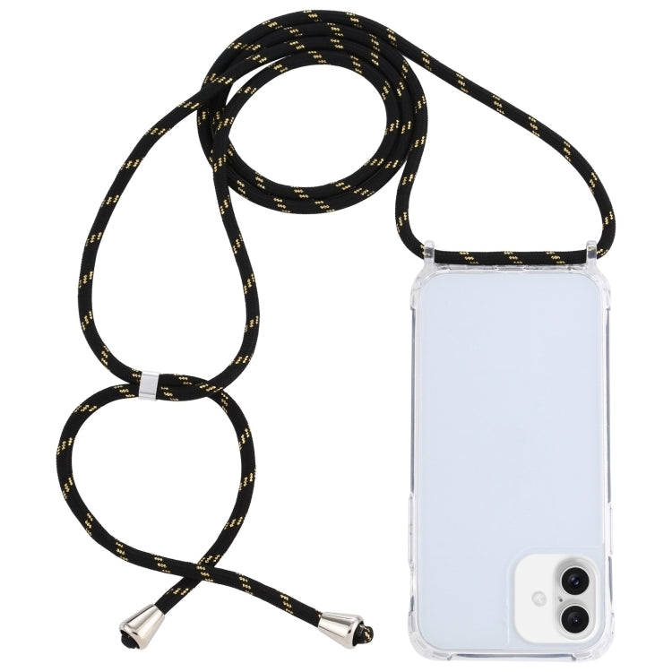 Funda Protectora iPhone 16 Acrílico Transparente a Prueba de Golpes con Cordón (Negro y Dorado)