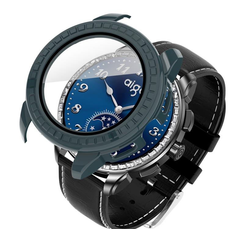 Funda protectora para reloj inteligente Aigo M8 con película templada integrada para PC (verde pino)