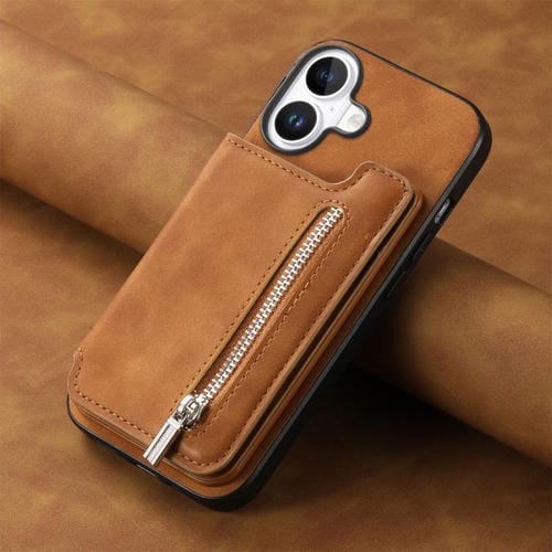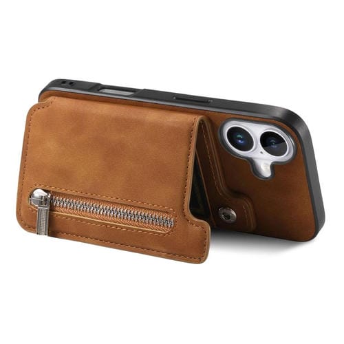 Funda retro con cremallera MagSafe para iPhone 17, tarjetero y monedero (marrón)