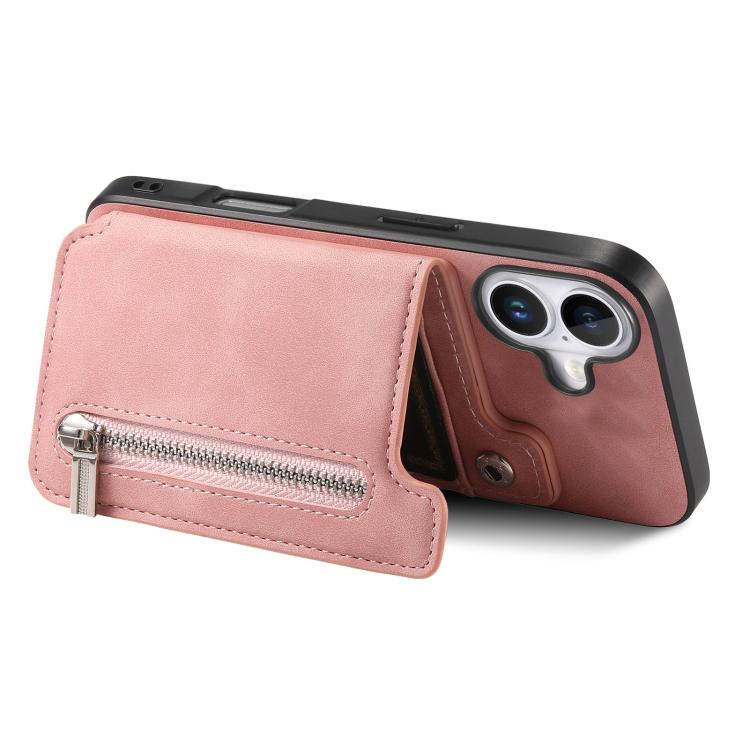 Funda retro con cremallera MagSafe para iPhone 17, tarjetero y monedero (rosa)