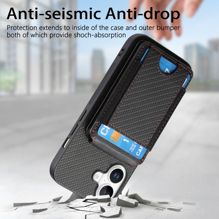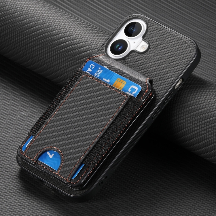 Funda Tipo Billetera Fibra de Carbono iPhone 16 Plus con Tapa Vertical (Negra)