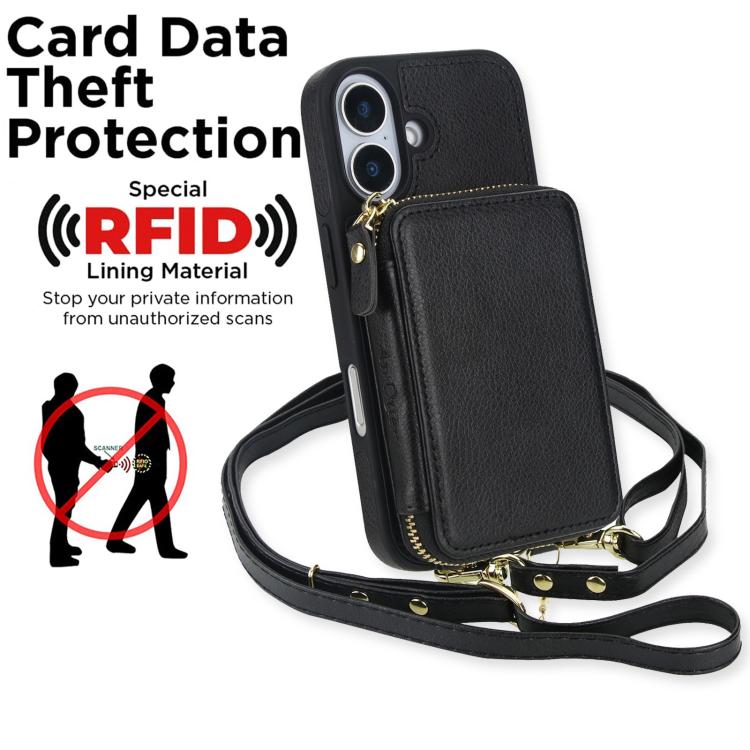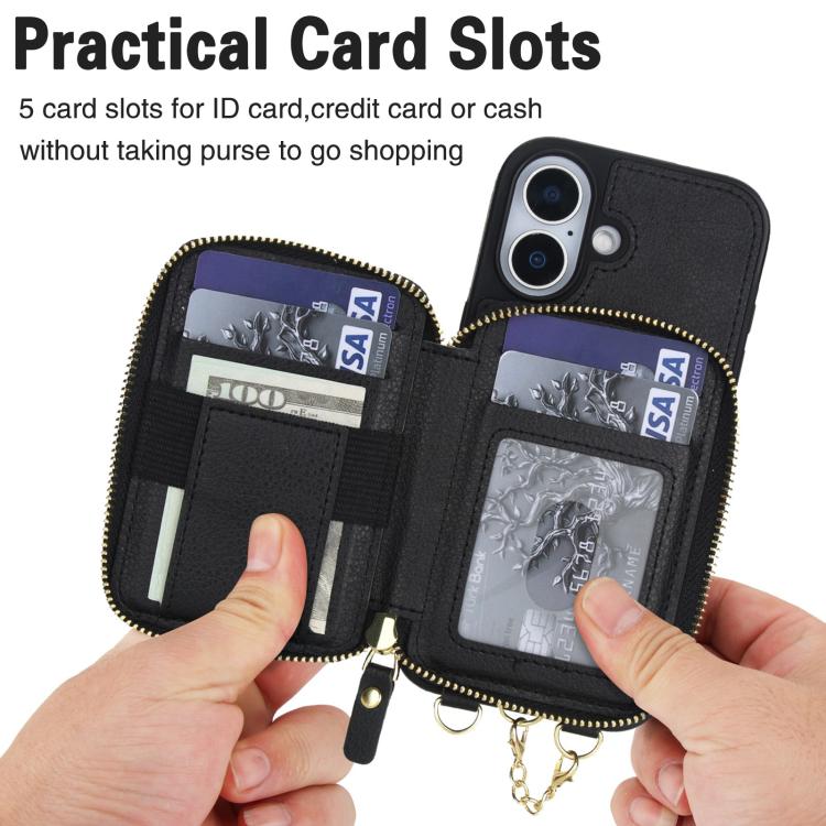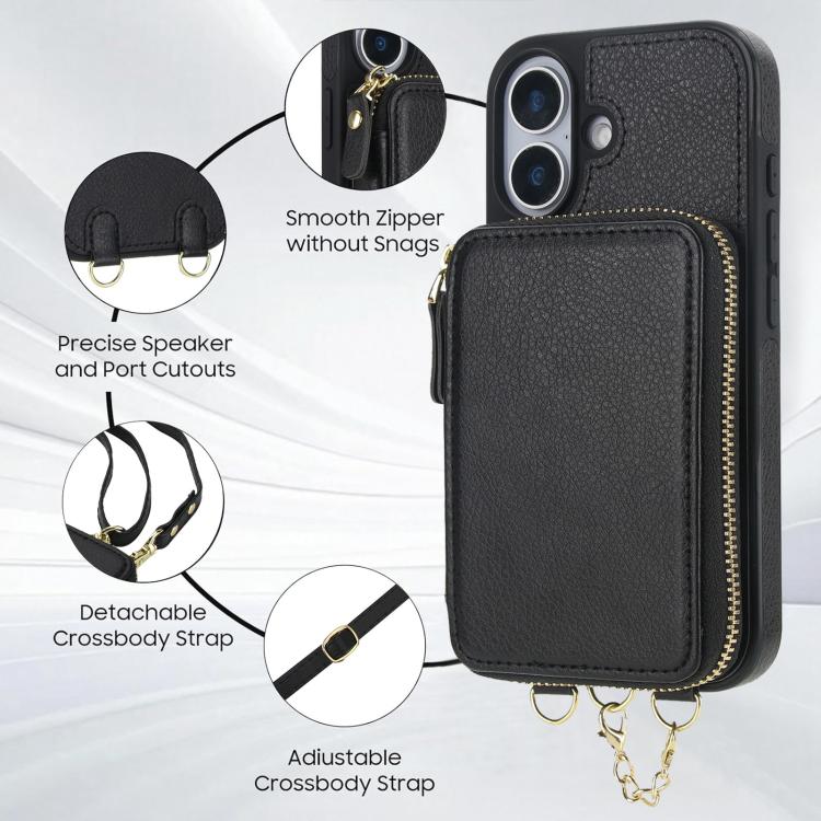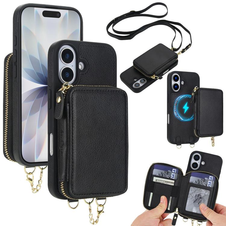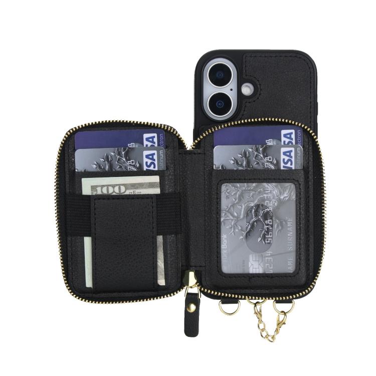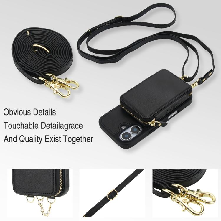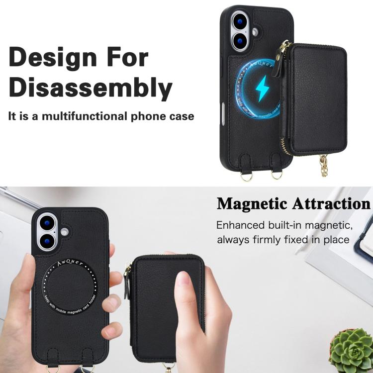Funda tipo cartera bandolera con cremallera 2 en 1 AwQuer para iPhone 17 (negra)
