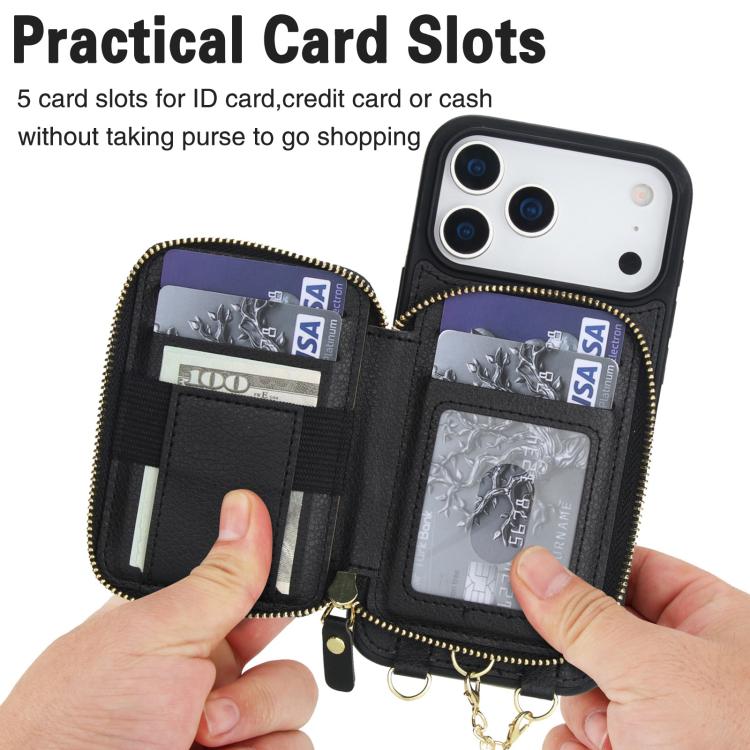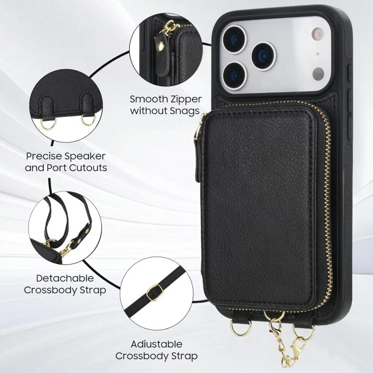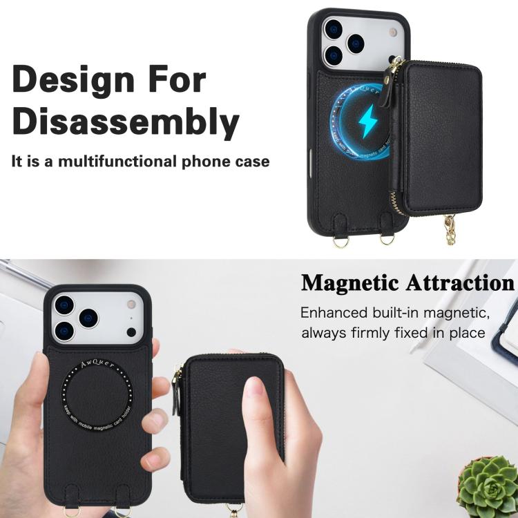Funda tipo cartera bandolera con cremallera 2 en 1 AwQuer para iPhone 17 Pro (negra)