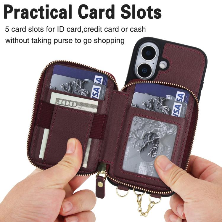 Funda tipo cartera bandolera con cremallera AwQuer 2 en 1 para iPhone 17, con parte trasera de cuero (rojo vino).