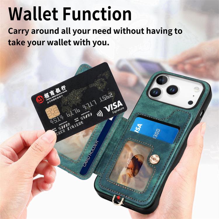 Funda tipo cartera con anillo multitarjeta y diseño retro para iPhone 17 Pro Max (verde)