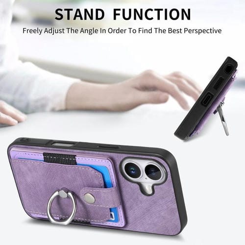 Funda tipo cartera con anillo y tarjetero para iPhone 17 (morada)