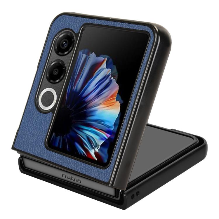 Funda Trasera ZTE Nubia Flip2 con Ranuras para Tarjetas y Textura Litchi (Azul)