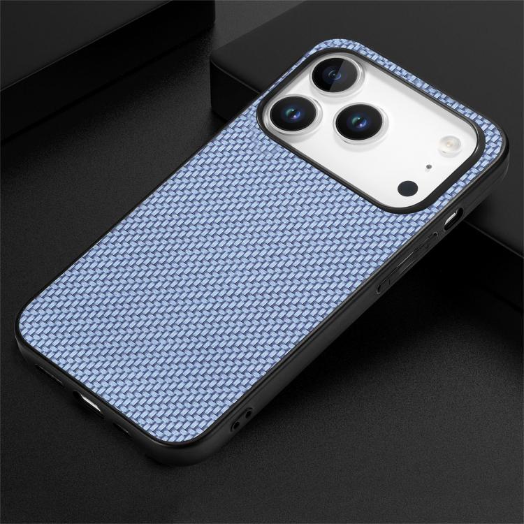 Funda trasera de cuero con textura de fibra de carbono para iPhone 17 Pro (azul)