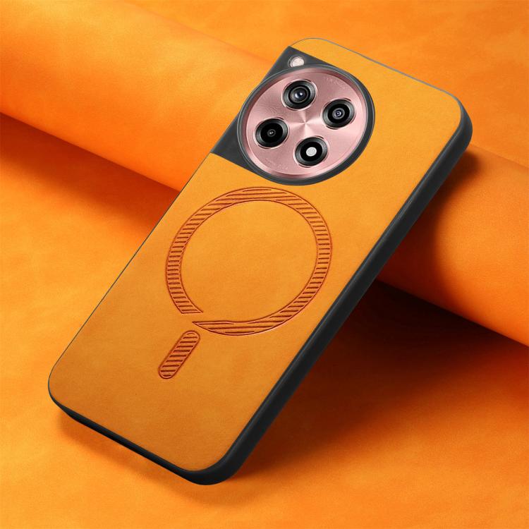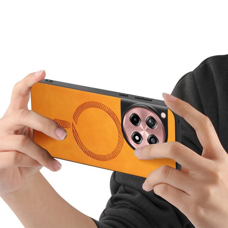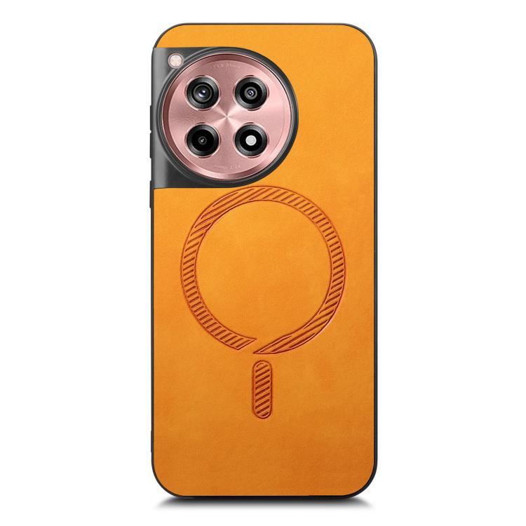 Funda Trasera PU Magsafe para OnePlus Ace 3/12R 5G (Amarilla) Color Sólido Retro
