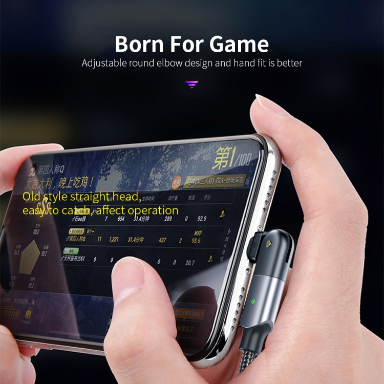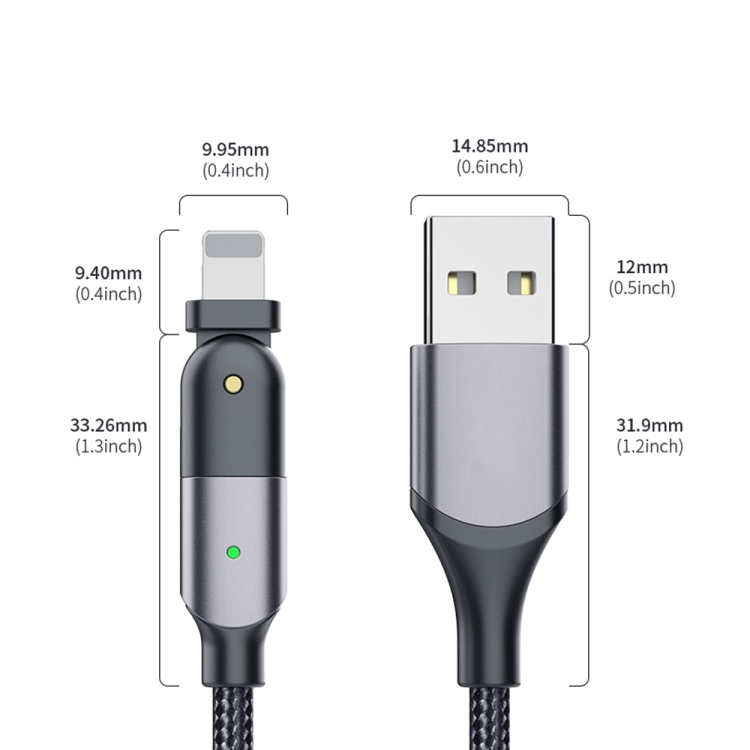 Cable de carga USB A 8 Pines Fxcl-Wy0G 2.4A codo giratorio 180 grados (Gris) 1.2 m