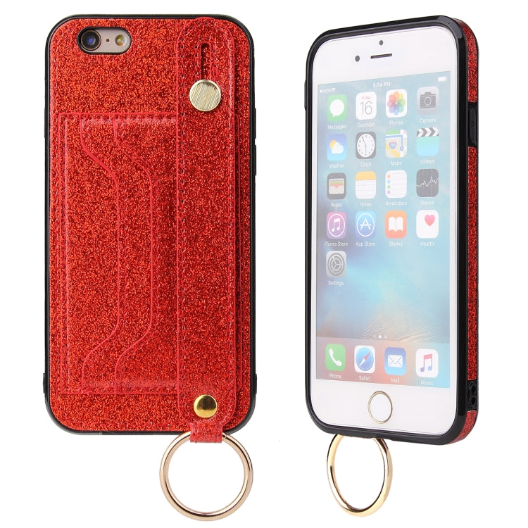 Funda Protectora iPhone 6 Plus 6S Plus Glitter Powder PU TPU Soporte Tarjetero Correa (Rojo)