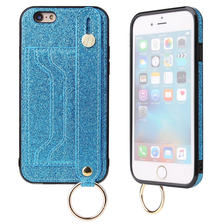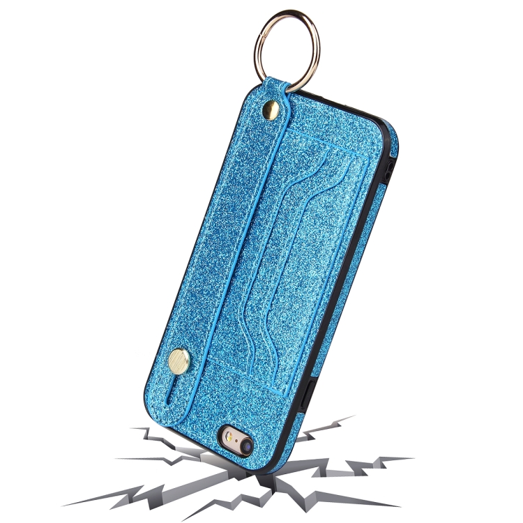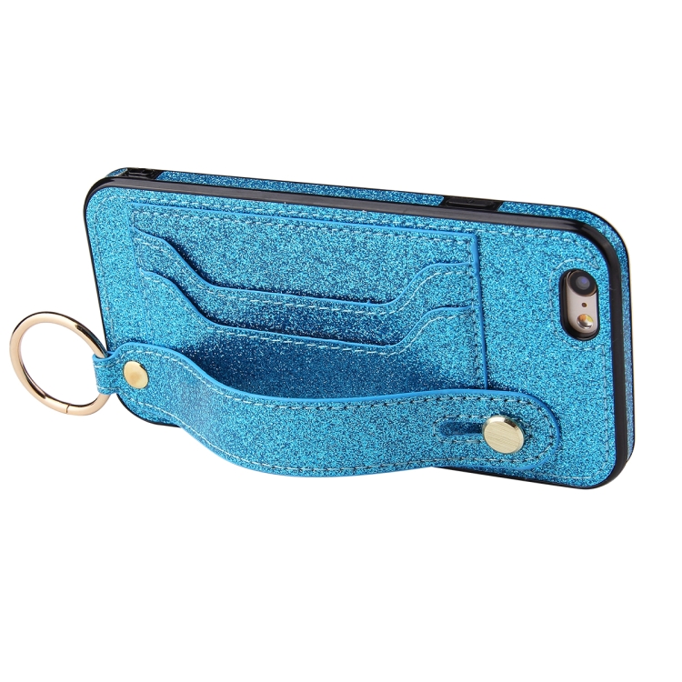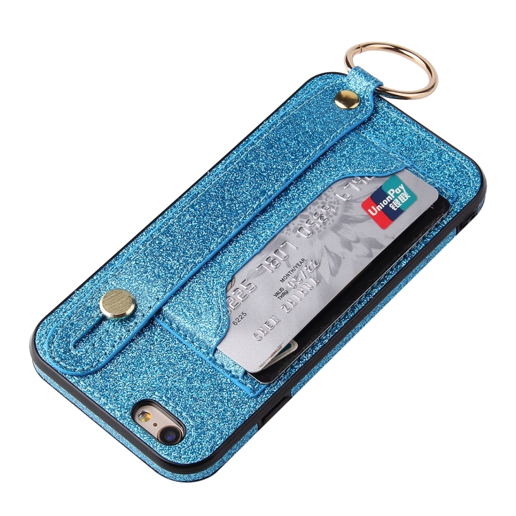 Funda Protectora Pu + TPU Glitter Powder para iPhone 6 Plus / 6S Plus con Soporte, Tragamonedas y Correa (Azul)
