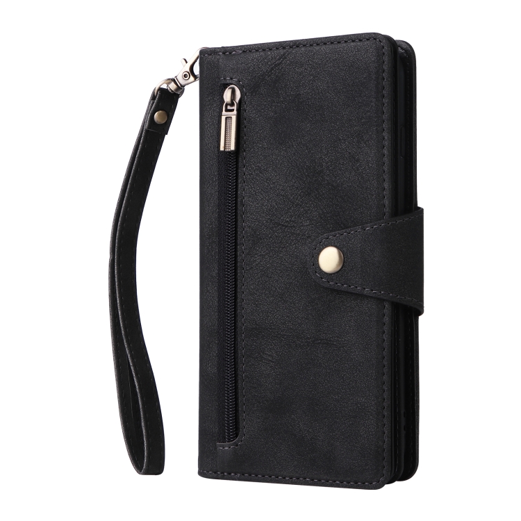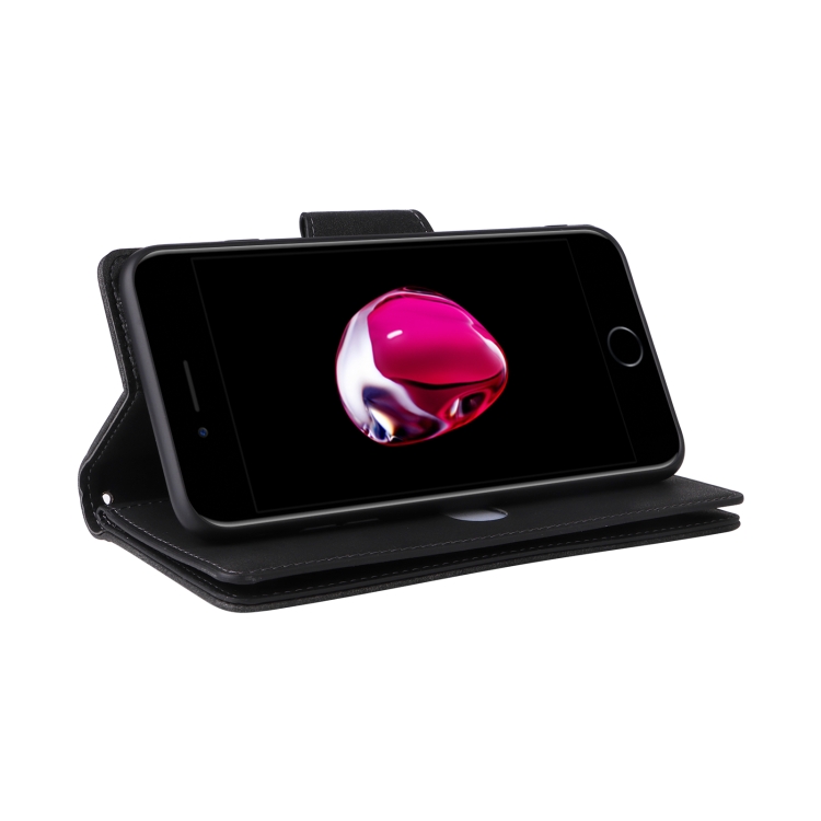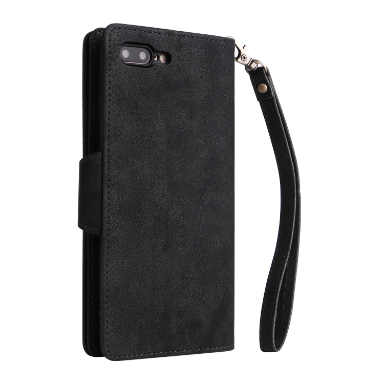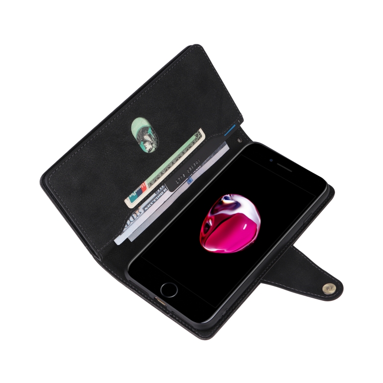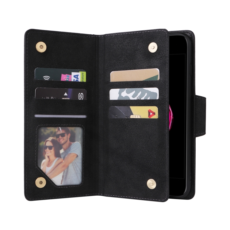 Funda de Teléfono Cuero Hebilla Rivet para iPhone 7 Plus/8 Plus 9 Tarjetas Tres Pliegues (Negro)