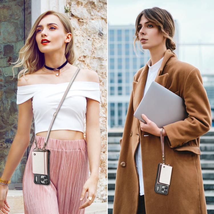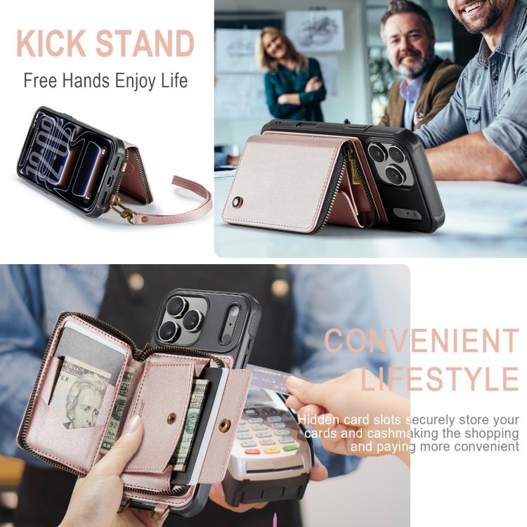 JEEHOOD C22 Series - Funda de cuero con cremallera y doble cordón para iPhone 17 Pro (oro rosa)