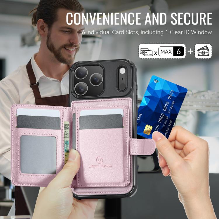 JEEHOOD J09 - Funda de cuero con hebilla para iPhone 17 Pro Max, estilo magnético, RFID, MagSafe (rosa)