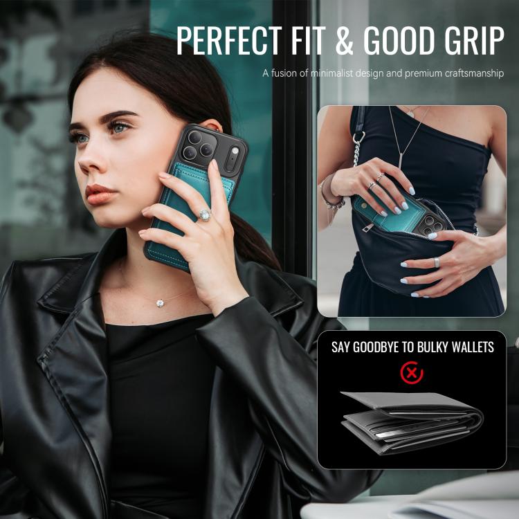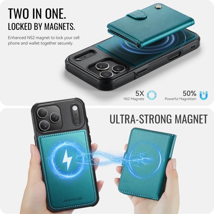 JEEHOOD J09 - Funda de cuero con hebilla para iPhone 17 Pro Max, estilo magnético, RFID, MagSafe (verde)