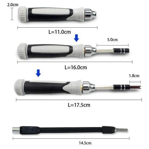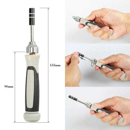 El Juego de destornilladores 60 en 1 S2 es una herramienta multifuncional diseñada para la reparación y desmontaje de dispositivos electrónicos como Teléfonos Móviles, Computadoras Portátiles, juguetes y electrodomésticos. Este set profesional incluye una amplia variedad de puntas intercambiables fabricadas en acero de aleación S2 y un mango ergonómico con material plástico ABS, que ofrece resistencia y durabilidad. Su diseño compacto y antideslizante facilita el manejo y transporte, mientras que el sistema magnético en las puntas permite una manipulación precisa de tornillos de diferentes tipos y tamaños. Este Conjunto es compatible con múltiples modelos y marcas, proporcionando una solución integral para usuarios que reparan por cuenta propia o técnicos especializados.