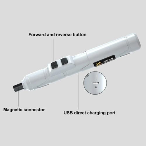 El Juego de Destornilladores Eléctricos de Precisión en Miniatura Tipo Bolígrafo es una herramienta multifuncional diseñada para la reparación y mantenimiento de dispositivos delicados como Relojes y Teléfonos Móviles. Este equipo compacto y Portátil ofrece una velocidad de rotación de 250 revoluciones por minuto, lo que permite un trabajo preciso y controlado en componentes pequeños y sensibles. Fabricado con material ABS resistente, incorpora una Batería de litio reCargable de 1100 mAh que proporciona una fuente de Alimentación eficiente y autónoma con un voltaje de 3.6V DC. Su tamaño reducido de 17,5 x 2,3 cm y peso ligero de 145 gramos facilitan su manejo en tareas de precisión. Este modelo es compatible con una amplia gama de dispositivos electrónicos, ideal para usuarios que reparan por cuenta propia o técnicos especializados que requieren una herramienta confiable para ajustes finos y desmontajes minuciosos.