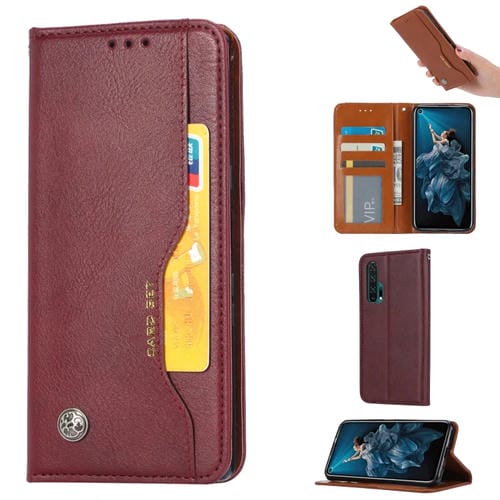 Funda de Cuero Knead Skin Texture para Huawei Honor 20 Pro con Tapa Horizontal, Soporte, Ranuras y Billetera (Rojo Vino)