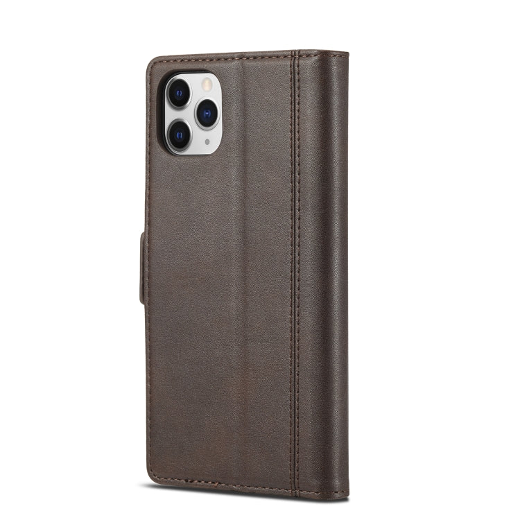 Funda de Cuero Flip Horizontal Lc.Imeeke para iPhone 11 Pro Max con Hebilla Magnética, Soporte, Tragamonedas y Billetera (Café)