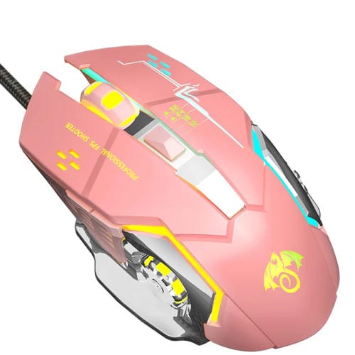 • 1x Ratón con Cable Leaven X6 Ergonómico para Computadora de Juegos 6 Teclas Longitud Cable 1,42 M (Rosa)