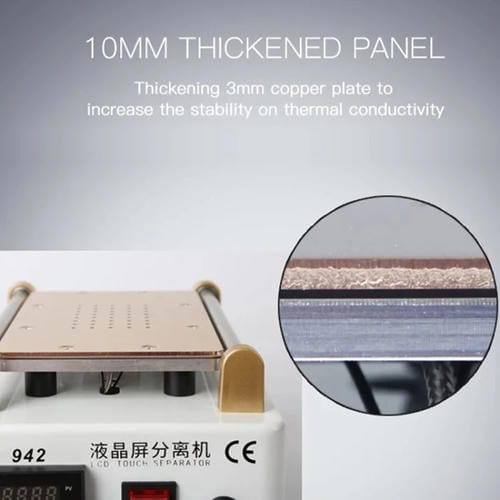La Máquina de Desmontaje de Pantalla Phone Kaisi NT942 con Enchufe AU es un equipo profesional diseñado para la separación precisa y segura de Pantallas LCD en dispositivos Móviles. Su compatibilidad genérica permite su uso en una amplia variedad de modelos de Teléfonos con Pantallas de hasta 7 pulgadas. Equipado con un sistema de control de temperatura microcomputarizado, esta Máquina ofrece un rango ajustable de 0 a 400 grados centígrados, garantizando un calentamiento rápido y estable para facilitar el desmontaje sin daños. Su función Principal es proporcionar una succión potente mediante una bomba de aire de gran capacidad, que asegura una separación eficiente de la Pantalla LCD. Ideal para Técnicos y usuarios que reparan por cuenta propia, este equipo combina durabilidad y precisión en un solo dispositivo.