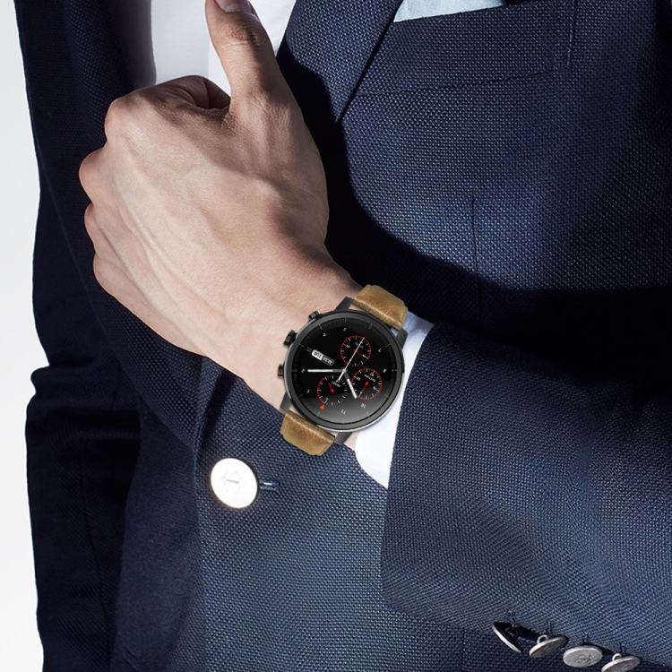 Correa de Reloj Amazfit 2 Stratos Cuero Genuino con Cera de Aceite (Marrón Amarillo)