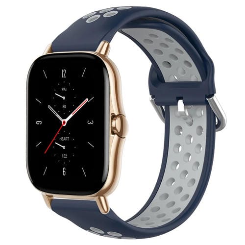 Correa de Reloj silicona deportiva Amazfit GTS 2 20mm transpirable perforada (Azul Medianoche + Gris)