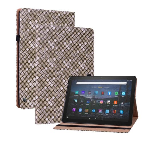 Funda inteligente de cuero tejido para Amazon Kindle Fire HD10 2021 y HD10 Plus 2021 (Marrón)