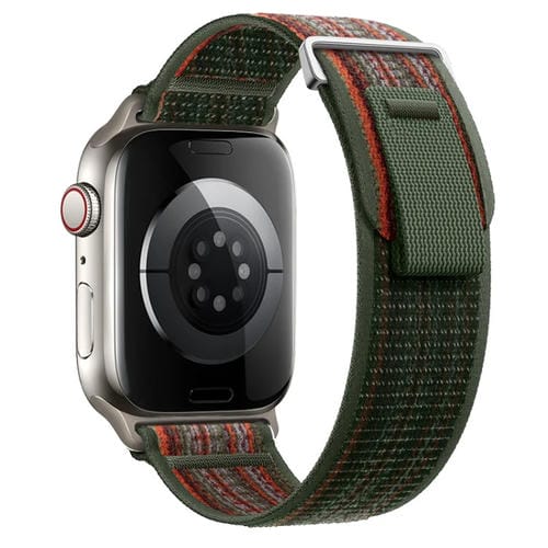 Correa de Nailon para Apple Watch Se 2022 40mm con Bucle Doble Sección (Verde Abeto Oscuro, Naranja)