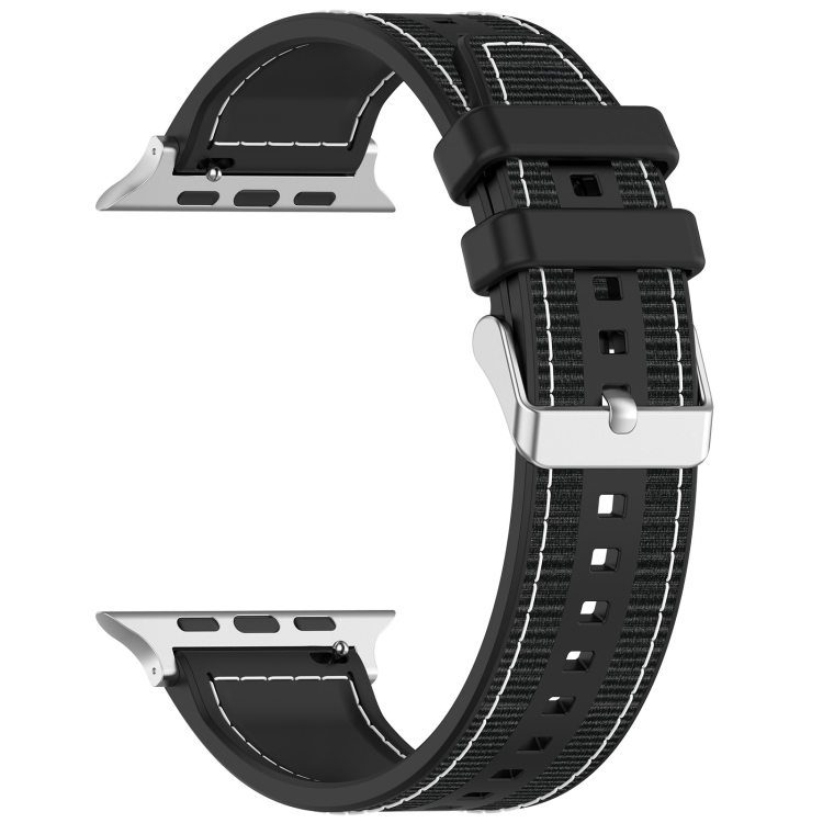 Correa para Apple Watch SE 2022 de Silicona y Nailon Híbrido con Hebilla 44mm (Negro)