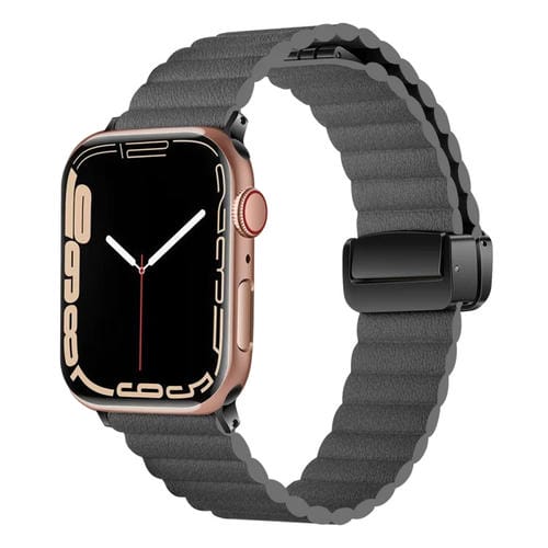 Correa para Apple Watch Series 9 45mm con Hebilla Plegable Magnética y Diseño Ondulación de Agua (Gris)