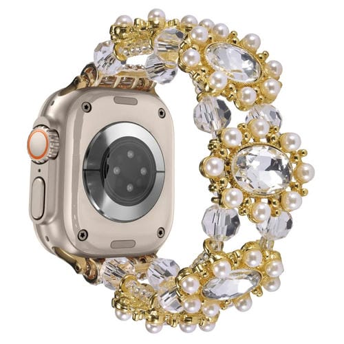 Correa para Apple Watch Ultra 2 con Pulsera de Piedras Preciosas y Perlas 49mm (Dorado)