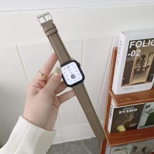Correa de Cuero para Apple Watch Ultra 49mm y Series 8, 7, SE, 6, 5, 4, 3, 2, 1 con Hilo de Coser Lychee (Café)