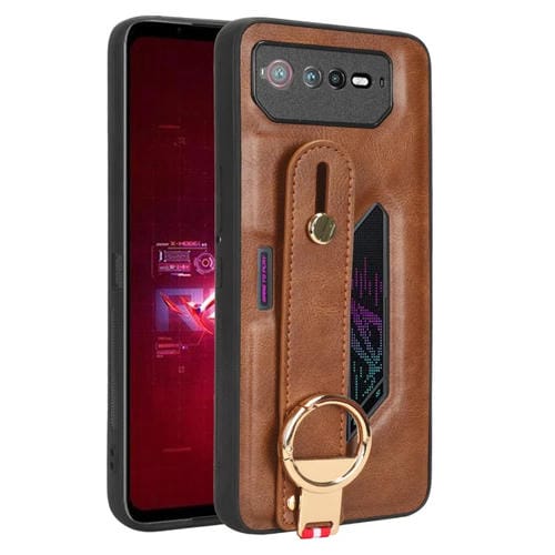 Funda Trasera Muñequera de Cuero para Asus Rog Phone 6 / Rog6 (Marrón)