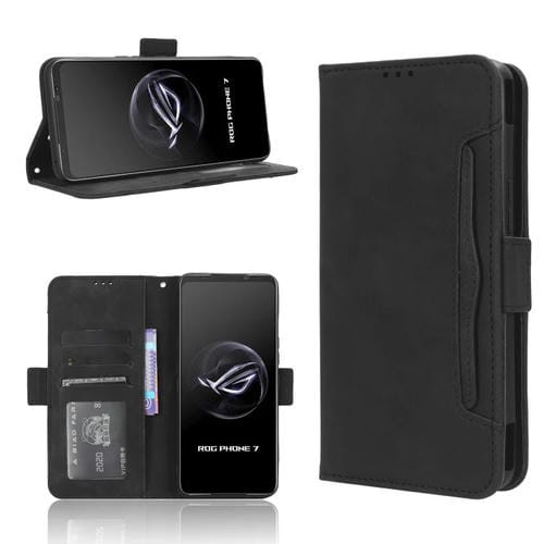 Funda de Cuero para Asus Rog Phone 7 con Skin Feel, Textura Becerro y Ranuras para Tarjetas (Negro)