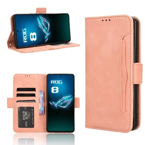 Funda de Cuero para Asus Rog Phone 8 Pro con Ranuras para Tarjetas y Textura Skin Feel (Rosa)