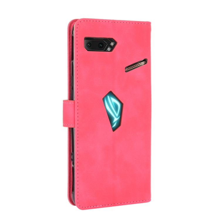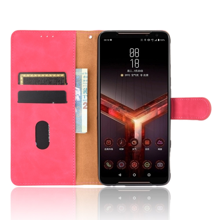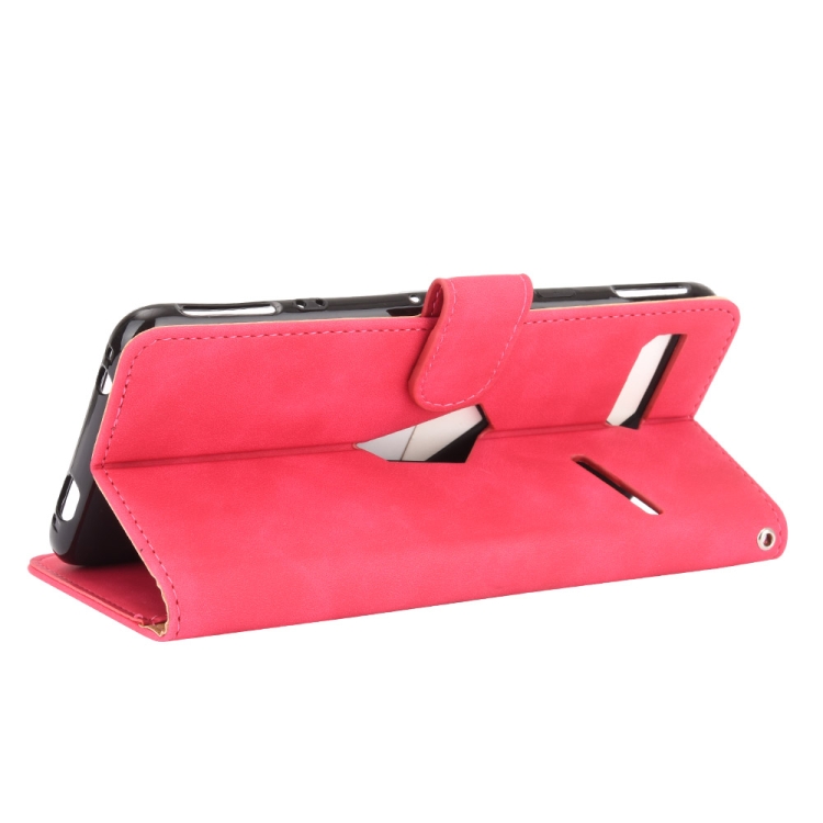 Estuche de Cuero PU para Asus Rog Phone II ZS660KL con Hebilla Magnética, Soporte y Ranuras para Tarjetas (Rosa Roja)