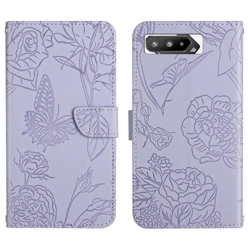 Funda para Asus Rog Teléfono 5 Zs673Ks Cuero en Relieve Mariposa (Púrpura)